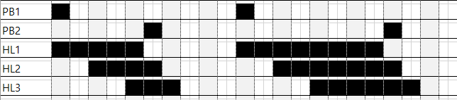 - PB1을 누르면 HL1, HL2, HL3가 순차적으로 동작한다.