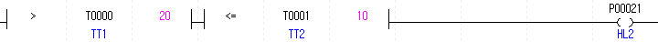 TON TT2 20 //2초 후 타이머 접점 변경. 내부에 조건문을 넣을 수 있다.