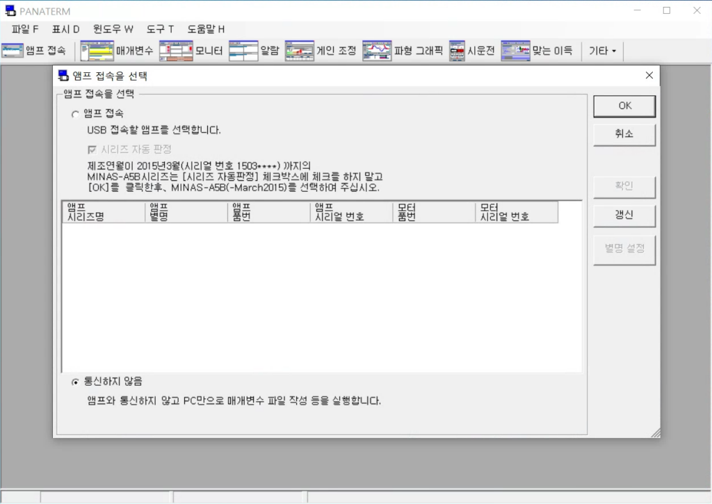 설치를 모두 마친 후, 바탕화면의 PANATERM ver.6.0 단축키를 실행한다.