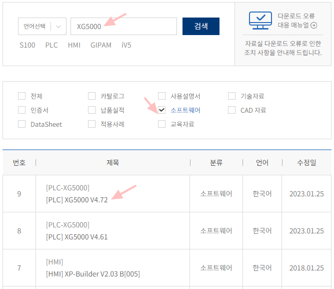 먼저 검색 입력창에 XG5000치고 소프트웨어에 체크한다.