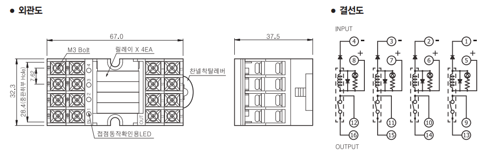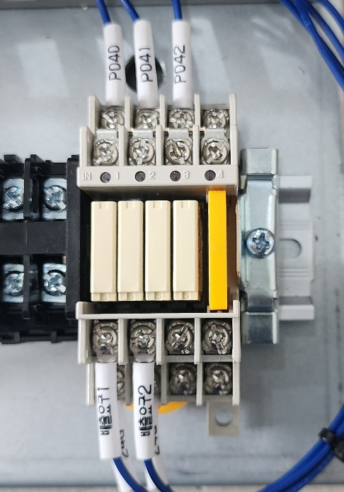 눈썰미 있는 사람은.. (본인도 처음에는 몰랐지만) 윗 부분(IN과 숫자 1,2,3,4) 영역의 단자에 무엇인가 연결된 것을 볼 수 있다. 서로 다른 단자를 공통으로 연결해 주는 쇼트바가 장착되어 있다.