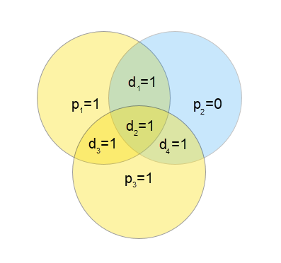 그림 3에서 보듯이 $p_2$와 $p_3$가 불량하다. 그런데 $d_2$는 정상임을 좌상의 집합에서 이미 보이고 있다. 그러므로 $p_2$와 $p_3$의 공통 값 $d_4$가 문제임을 알 수 있다. 이걸 0으로 변경하면 모두 정상으로 바뀐다.