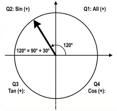 $$\sin(90^\circ + 30^\circ) = \cos 30^\circ$$
