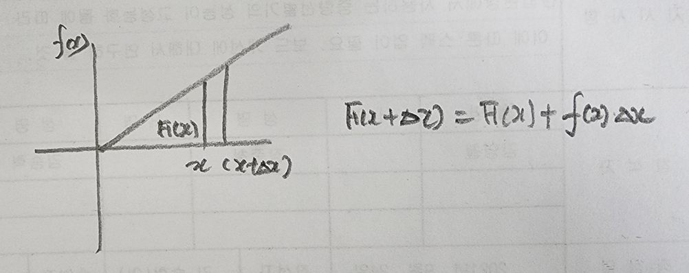 이 면적을 나타내는 함수를 F(x)라고 하고 아래 그래프처럼 생각해보자.