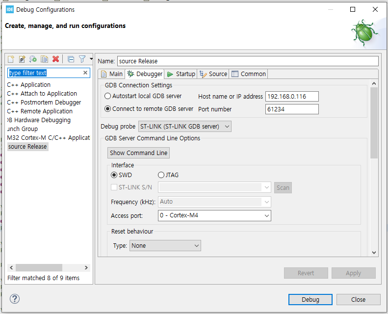 원격지에 CubePROG를 깔아놓코 chromeremote로 연결해서 bin 또는 elf 파일을 전송해서 보드에 파일을 다운로드했다. 그런데 디버깅을 할 일이 생겼다.