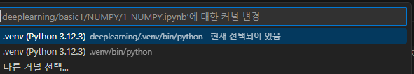 robot@kimsh:~/work/Robot-AI/deeplearning$ source /home/robot/work/Robot-AI/deeplearning/.venv/bin/activate (.venv) robot@kimsh:~/work/Robot-AI/deeplearning$ pip list Package Version ------- ------- numpy 2.4.0 pip 25.3 (.venv) robot@kimsh:~/work/Robot-AI/deeplearning$ pip install ipykernel Collecting ipykernel Using cached ipykernel-7.1.0-py3-none-any.whl.metadata (4.5 kB) Collecting comm>=0.1.1 (from ipykernel) Using cached comm-0.2.3-py3-none-any.whl.metadata (3.7 kB) Collecting debugpy>=1.6.5 (from ipykernel) Using cached debugpy-1.8.19-cp312-cp312-manylinux_2_34_x86_64.whl.metadata (1.4 kB) Collecting ipython>=7.23.1 (from ipykernel) Using cached ipython-9.9.0-py3-none-any.whl.metadata (4.6 kB) Collecting jupyter-client>=8.0.0 (from ipykernel) Using cached jupyter_client-8.7.0-py3-none-any.whl.metadata (8.3 kB) Collecting jupyter-core!=5.0.*,>=4.12 (from ipykernel) Using cached jupyter_core-5.9.1-py3-none-any.whl.metadata (1.5 kB) Collecting matplotlib-inline>=0.1 (from ipykernel) Using cached matplotlib_inline-0.2.1-py3-none-any.whl.metadata (2.3 kB) Collecting nest-asyncio>=1.4 (from ipykernel) Using cached nest_asyncio-1.6.0-py3-none-any.whl.metadata (2.8 kB) Collecting packaging>=22 (from ipykernel) Using cached packaging-25.0-py3-none-any.whl.metadata (3.3 kB) Collecting psutil>=5.7 (from ipykernel) Using cached psutil-7.2.1-cp36-abi3-manylinux2010_x86_64.manylinux_2_12_x86_64.manylinux_2_28_x86_64.whl.metadata (22 kB) Collecting pyzmq>=25 (from ipykernel) Using cached pyzmq-27.1.0-cp312-abi3-manylinux_2_26_x86_64.manylinux_2_28_x86_64.whl.metadata (6.0 kB) Collecting tornado>=6.2 (from ipykernel) Using cached tornado-6.5.4-cp39-abi3-manylinux_2_5_x86_64.manylinux1_x86_64.manylinux_2_17_x86_64.manylinux2014_x86_64.whl.metadata (2.8 kB) Collecting traitlets>=5.4.0 (from ipykernel) Using cached traitlets-5.14.3-py3-none-any.whl.metadata (10 kB) Collecting decorator>=4.3.2 (from ipython>=7.23.1->ipykernel) Using cached decorator-5.2.1-py3-none-any.whl.metadata (3.9 kB) Collecting ipython-pygments-lexers>=1.0.0 (from ipython>=7.23.1->ipykernel) Using cached ipython_pygments_lexers-1.1.1-py3-none-any.whl.metadata (1.1 kB) Collecting jedi>=0.18.1 (from ipython>=7.23.1->ipykernel) Using cached jedi-0.19.2-py2.py3-none-any.whl.metadata (22 kB) Collecting pexpect>4.3 (from ipython>=7.23.1->ipykernel) Using cached pexpect-4.9.0-py2.py3-none-any.whl.metadata (2.5 kB) Collecting prompt_toolkit<3.1.0,>=3.0.41 (from ipython>=7.23.1->ipykernel) Using cached prompt_toolkit-3.0.52-py3-none-any.whl.metadata (6.4 kB) Collecting pygments>=2.11.0 (from ipython>=7.23.1->ipykernel) Using cached pygments-2.19.2-py3-none-any.whl.metadata (2.5 kB) Collecting stack_data>=0.6.0 (from ipython>=7.23.1->ipykernel) Using cached stack_data-0.6.3-py3-none-any.whl.metadata (18 kB) Collecting wcwidth (from prompt_toolkit<3.1.0,>=3.0.41->ipython>=7.23.1->ipykernel) Using cached wcwidth-0.2.14-py2.py3-none-any.whl.metadata (15 kB) Collecting parso<0.9.0,>=0.8.4 (from jedi>=0.18.1->ipython>=7.23.1->ipykernel) Using cached parso-0.8.5-py2.py3-none-any.whl.metadata (8.3 kB) Collecting python-dateutil>=2.8.2 (from jupyter-client>=8.0.0->ipykernel) Using cached python_dateutil-2.9.0.post0-py2.py3-none-any.whl.metadata (8.4 kB) Collecting platformdirs>=2.5 (from jupyter-core!=5.0.*,>=4.12->ipykernel) Using cached platformdirs-4.5.1-py3-none-any.whl.metadata (12 kB) Collecting ptyprocess>=0.5 (from pexpect>4.3->ipython>=7.23.1->ipykernel) Using cached ptyprocess-0.7.0-py2.py3-none-any.whl.metadata (1.3 kB) Collecting six>=1.5 (from python-dateutil>=2.8.2->jupyter-client>=8.0.0->ipykernel) Using cached six-1.17.0-py2.py3-none-any.whl.metadata (1.7 kB) Collecting executing>=1.2.0 (from stack_data>=0.6.0->ipython>=7.23.1->ipykernel) Using cached executing-2.2.1-py2.py3-none-any.whl.metadata (8.9 kB) Collecting asttokens>=2.1.0 (from stack_data>=0.6.0->ipython>=7.23.1->ipykernel) Using cached asttokens-3.0.1-py3-none-any.whl.metadata (4.9 kB) Collecting pure-eval (from stack_data>=0.6.0->ipython>=7.23.1->ipykernel) Using cached pure_eval-0.2.3-py3-none-any.whl.metadata (6.3 kB) Using cached ipykernel-7.1.0-py3-none-any.whl (117 kB) Using cached comm-0.2.3-py3-none-any.whl (7.3 kB) Using cached debugpy-1.8.19-cp312-cp312-manylinux_2_34_x86_64.whl (4.3 MB) Using cached ipython-9.9.0-py3-none-any.whl (621 kB) Using cached prompt_toolkit-3.0.52-py3-none-any.whl (391 kB) Using cached decorator-5.2.1-py3-none-any.whl (9.2 kB) Using cached ipython_pygments_lexers-1.1.1-py3-none-any.whl (8.1 kB) Using cached jedi-0.19.2-py2.py3-none-any.whl (1.6 MB) Using cached parso-0.8.5-py2.py3-none-any.whl (106 kB) Using cached jupyter_client-8.7.0-py3-none-any.whl (106 kB) Using cached jupyter_core-5.9.1-py3-none-any.whl (29 kB) Using cached matplotlib_inline-0.2.1-py3-none-any.whl (9.5 kB) Using cached nest_asyncio-1.6.0-py3-none-any.whl (5.2 kB) Using cached packaging-25.0-py3-none-any.whl (66 kB) Using cached pexpect-4.9.0-py2.py3-none-any.whl (63 kB) Using cached platformdirs-4.5.1-py3-none-any.whl (18 kB) Using cached psutil-7.2.1-cp36-abi3-manylinux2010_x86_64.manylinux_2_12_x86_64.manylinux_2_28_x86_64.whl (154 kB) Using cached ptyprocess-0.7.0-py2.py3-none-any.whl (13 kB) Using cached pygments-2.19.2-py3-none-any.whl (1.2 MB) Using cached python_dateutil-2.9.0.post0-py2.py3-none-any.whl (229 kB) Using cached pyzmq-27.1.0-cp312-abi3-manylinux_2_26_x86_64.manylinux_2_28_x86_64.whl (840 kB) Using cached six-1.17.0-py2.py3-none-any.whl (11 kB) Using cached stack_data-0.6.3-py3-none-any.whl (24 kB) Using cached asttokens-3.0.1-py3-none-any.whl (27 kB) Using cached executing-2.2.1-py2.py3-none-any.whl (28 kB) Using cached tornado-6.5.4-cp39-abi3-manylinux_2_5_x86_64.manylinux1_x86_64.manylinux_2_17_x86_64.manylinux2014_x86_64.whl (445 kB) Using cached traitlets-5.14.3-py3-none-any.whl (85 kB) Using cached pure_eval-0.2.3-py3-none-any.whl (11 kB) Using cached wcwidth-0.2.14-py2.py3-none-any.whl (37 kB) Installing collected packages: pure-eval, 