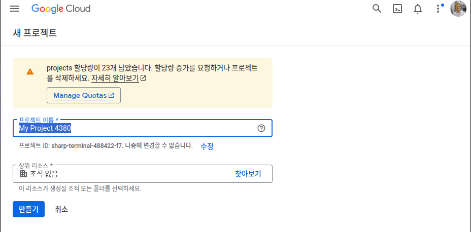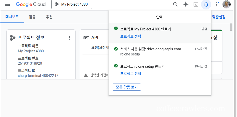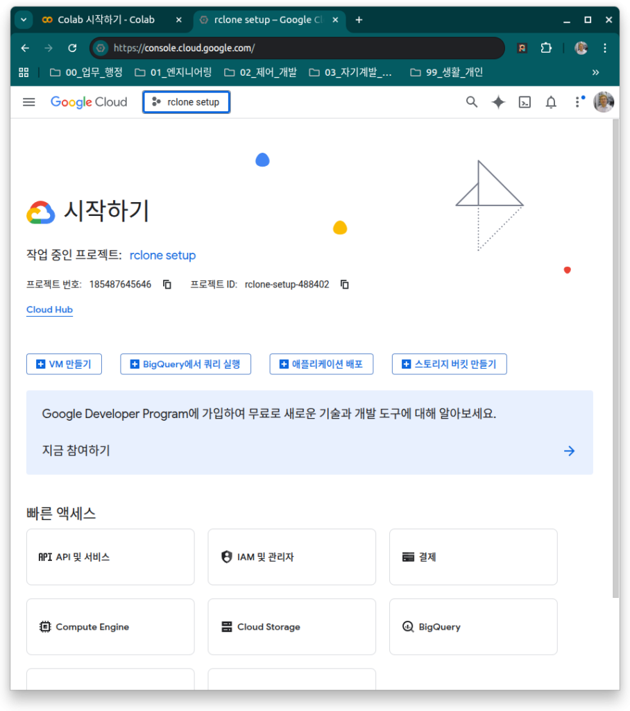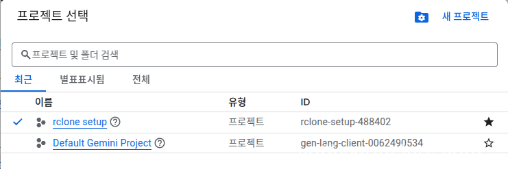 본인 꺼는 “rclone setup”이라고 있지만 새 프로젝트를 하나 더 만들어보겠다.