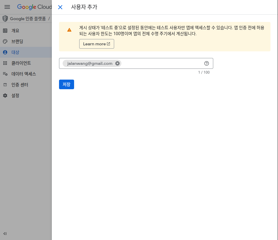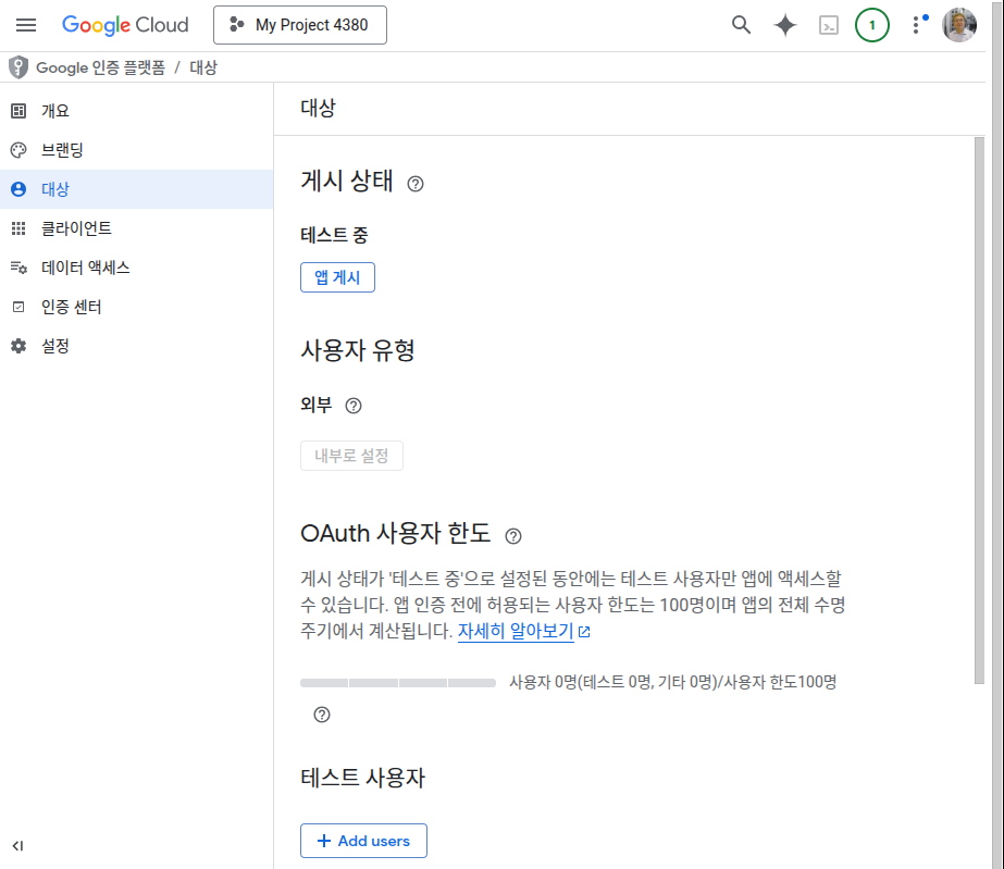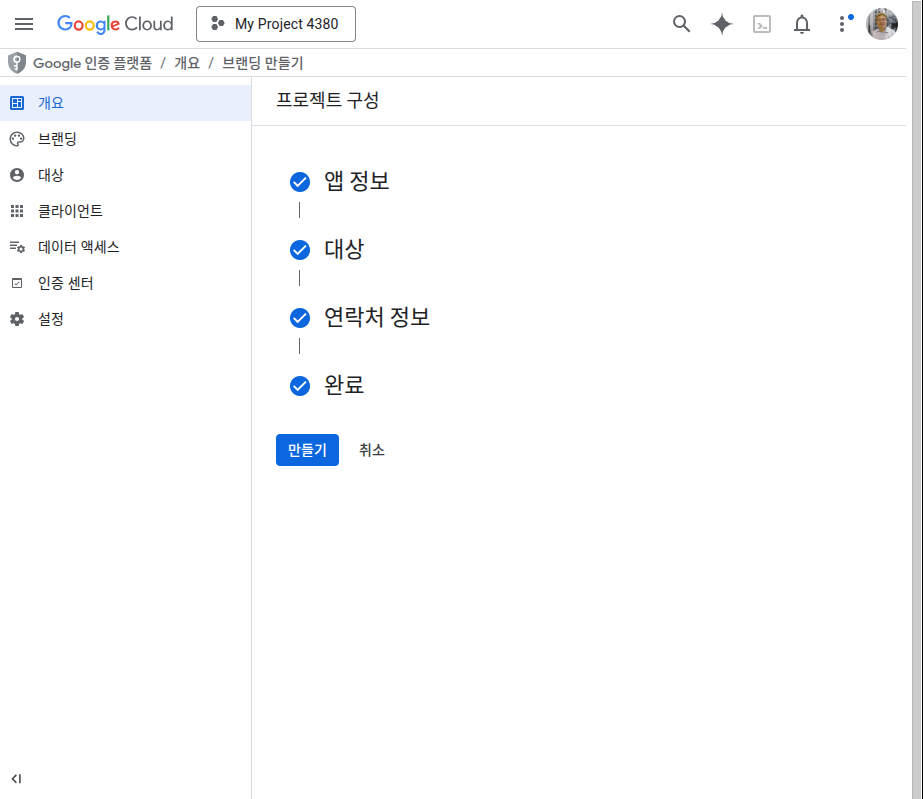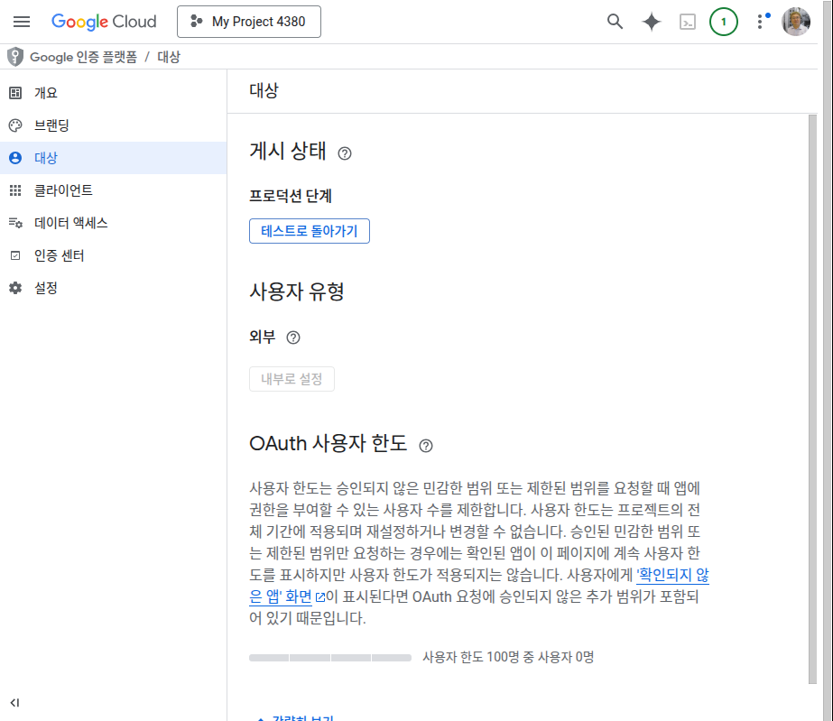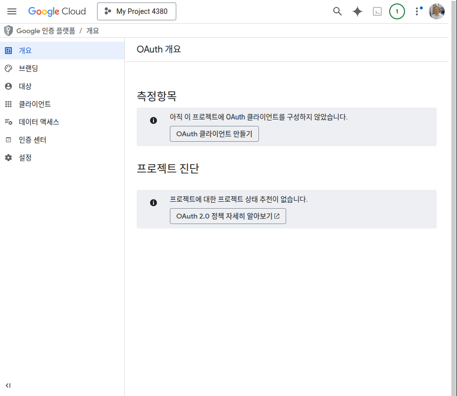 - “OAuth 클라이언트 만들기” 버튼 클릭