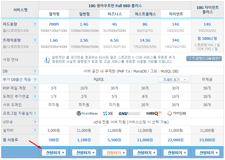 본인은 1년 전에 신청해서 WordPress를 설치해서 사용하다가 호스팅기간이 만료되어서 다시 연장하게 되었다. 만일 처음 신청자라면 서비스명 컬럼의 프로그램 자동설치 행에 보이는 WordPress 깔아 달라고 요청하면 자동으로 깔리게 된다. 그런데 본인은 기존 사용자라 그런지 초기화를 해도 무료로 WordPress를 자동설치해 주지 않는다. 그래서 본 포스팅을 작성하게 되었다. (WordPress 자동설치를 하는 사람은 아래 내용은 필요 없다.)