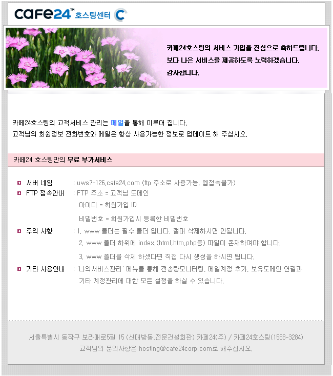 호스팅비용을 내고 네임서버 설정이 끝나면 자신의 홈피에 가보자.