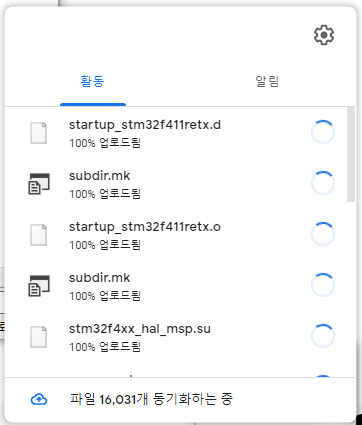 그러면, 아래의 그림처럼 클라우드의 ‘내 드라이브’에 D:\googleDrive의 데이타가 싱크가 됨을 확인할 수 있다. 아래는 로칼 파일이 클라우드상으로 복사되는 상황을 나타낸다.