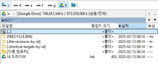 원래의 폴더(“내 드라이브”)는 가상화된 하드디스크 드라이브 H:드라이브내에 “내 드라이브” 폴더가 위치하고 있음을 보여주고 있었는데 지금은 “내 드라이브”는 D:\googleDrive”에 연결(Link)되어 있음을 명확히 나타내고 있기 때문에 <lnk> 확장자를 가짐을 알 수 있다.