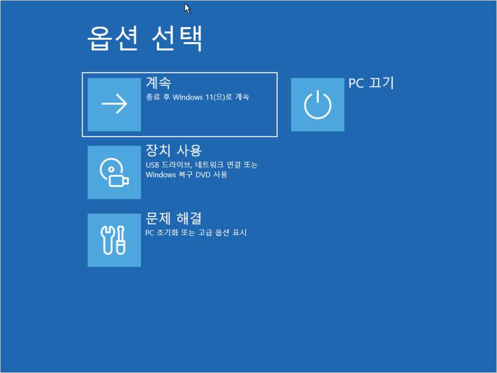 - 복구환경이 나타나면 ‘문제 해결’박스를 클릭한다.