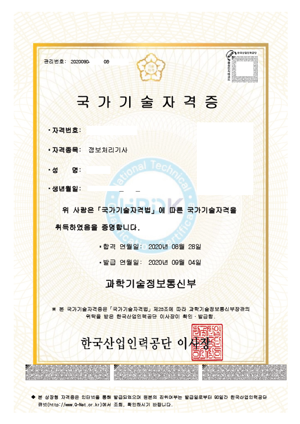 2020년 2회차에 신청해서 1,2회차 통합 시험 필기와 동회차 통합 실기시험을 통과해서 8월 28일 합격자 명단에 올랐습니다.