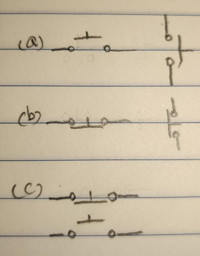 - b 접점 : 누르면 떨어진다. 누르면 OFF. (BREAK. 회로를 차단한다.)